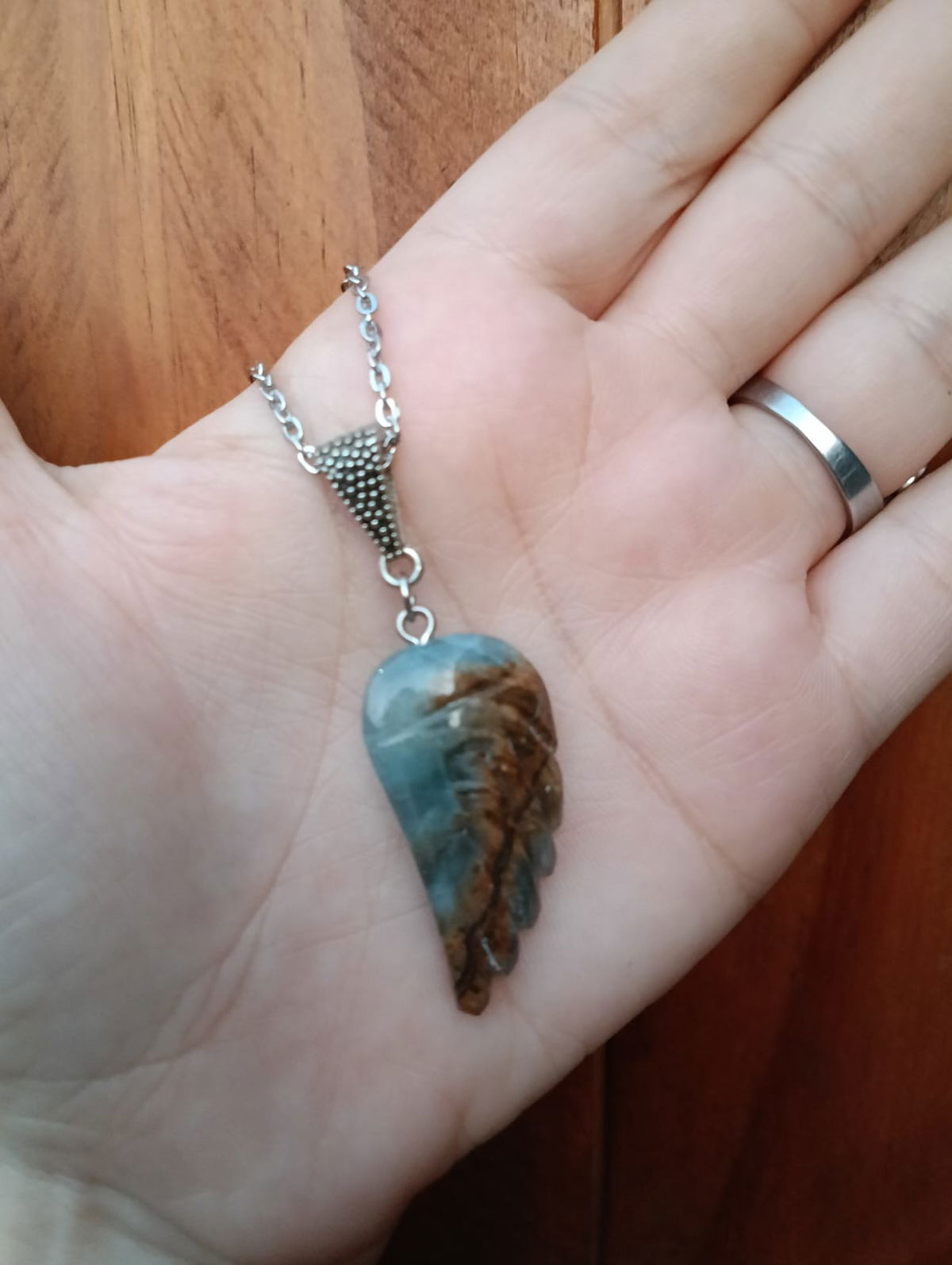 ~Dije Ala Ónix Cielo con cadena de 45cm, 50cm en acero quirúrgico.~