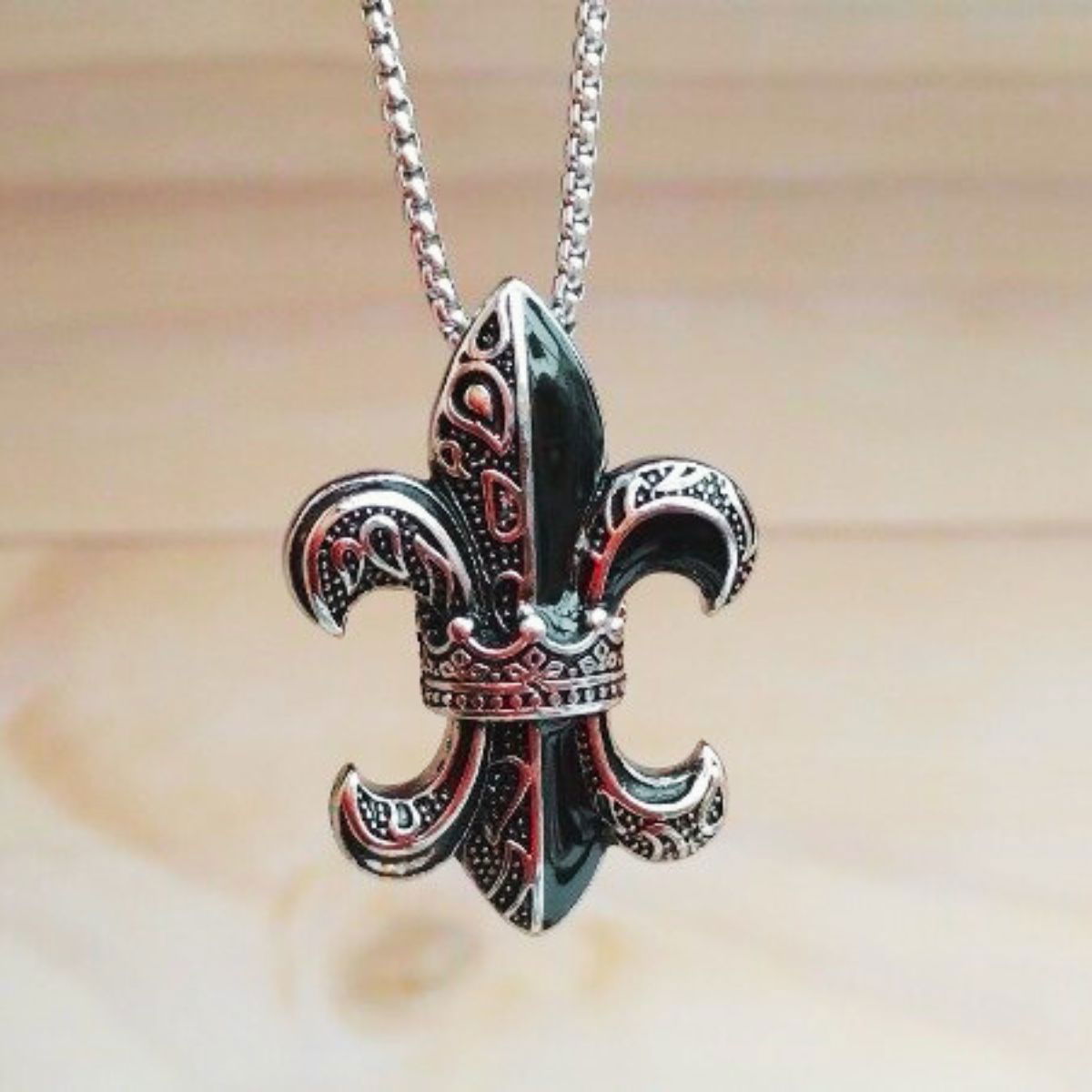 Dije Flor de Lis – 4 x 3 cm con cadena en acero quirúrgico