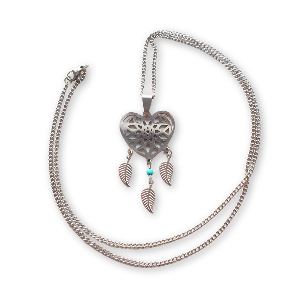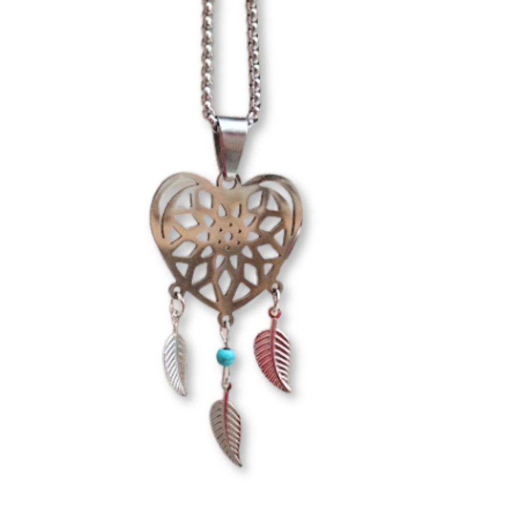 Símbolo de amor y resguardo energético. Este amuleto une la fuerza protectora del atrapasueños con la vibración del corazón, ayudando a liberar las energías negativas y atraer armonía, amor y buenos sueños.