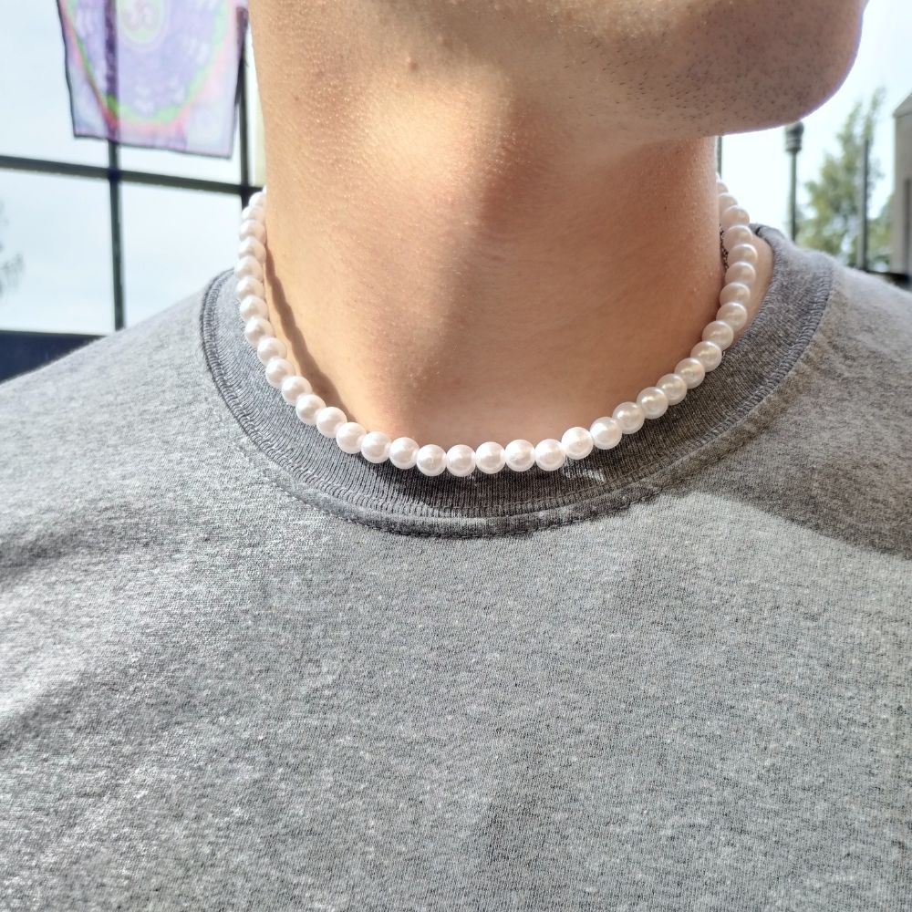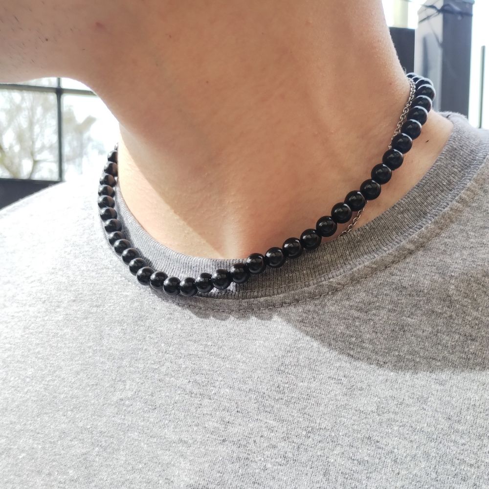 Collar elástico de perlas de plástico negro de 8mm