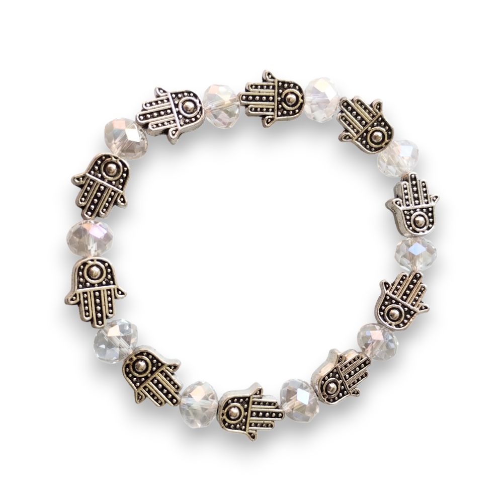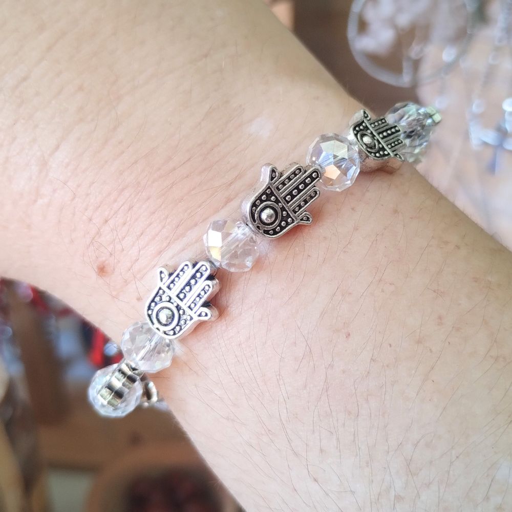 Las cuentas transparentes potencian su energía de claridad y pureza espiritual, reflejando la luz y multiplicando la vibración positiva alrededor de quien la lleva.