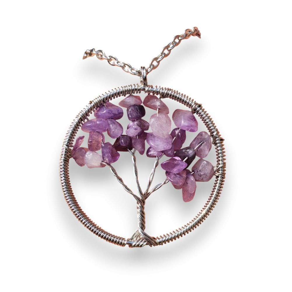 La Amatista, piedra de transmutación y calma, potencia la energía espiritual del amuleto. Ayuda a liberar miedos, proteger el aura y elevar la vibración interior, guiando hacia la serenidad y la claridad mental.