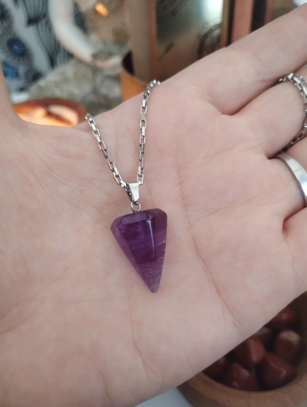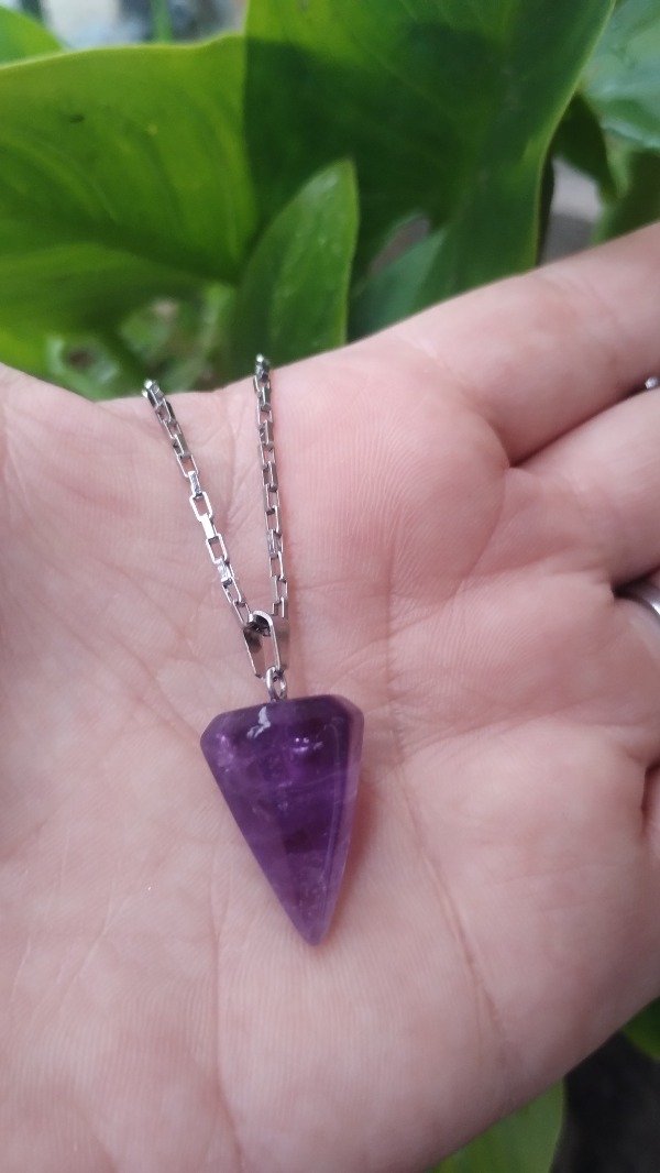 Dije Péndulo de Amatista con cadena en acero quirúrgico.