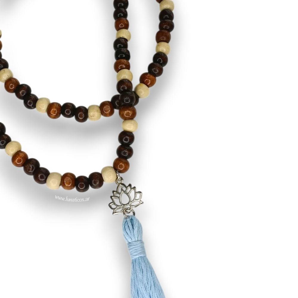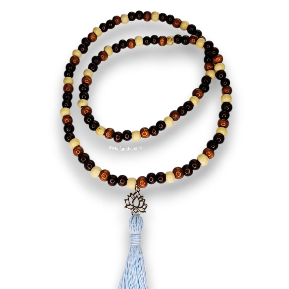 📿Este Japa Mala está confeccionado con 108 cuentas de madera en tonos naturales, ideal para tus prácticas de meditación, mantras o recitación. Incluye un dije de 🪷flor de loto, símbolo de transformación espiritual, y una delicada borla celeste que aporta calma y armonía. ✨