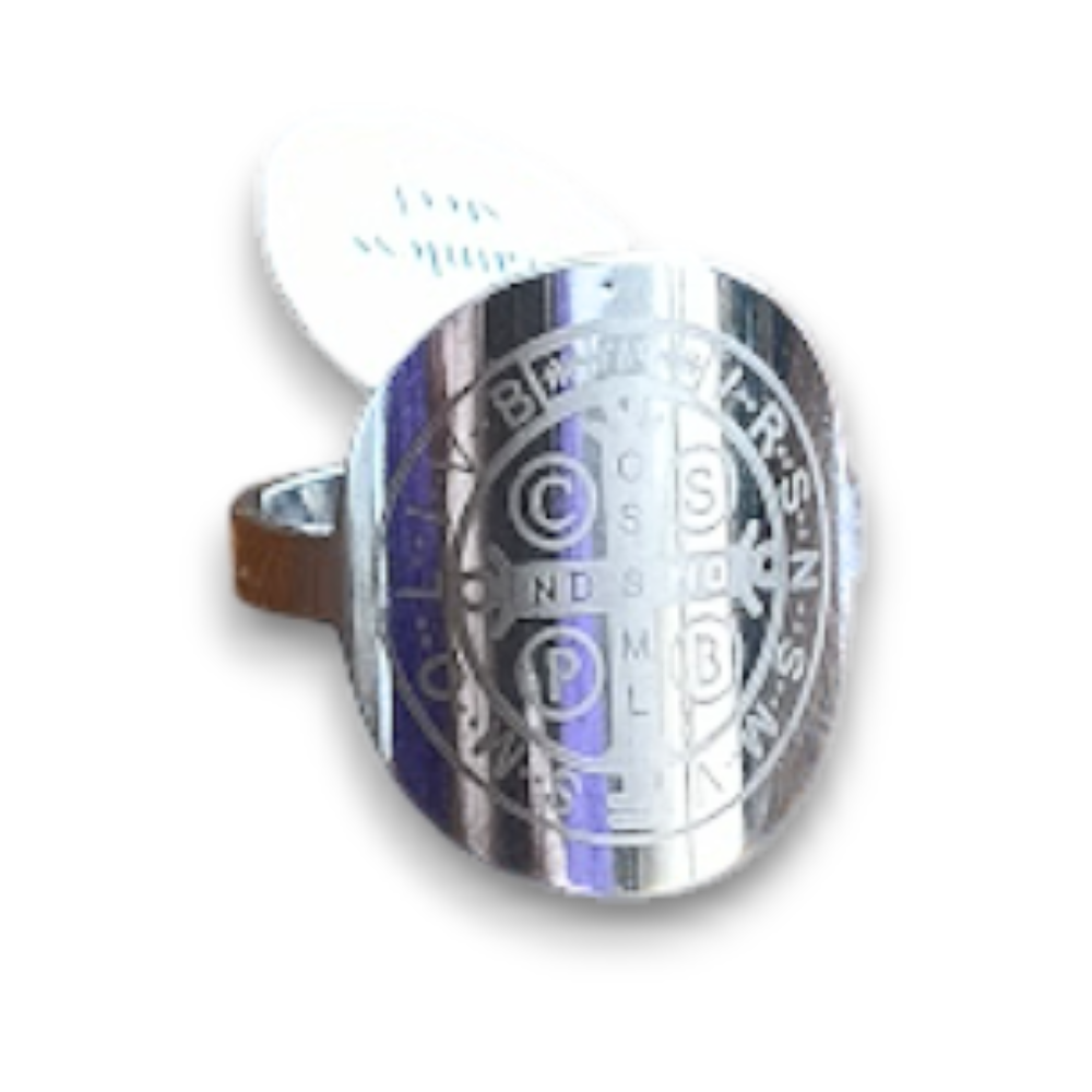 El anillo de San Benito es un poderoso símbolo de protección espiritual. Su medalla, grabada con oraciones y signos sagrados, se utiliza como defensa contra las energías negativas y como recordatorio de fe y fortaleza interior. Fabricado en acero quirúrgico, es resistente, duradero y perfecto para llevar a diario.
