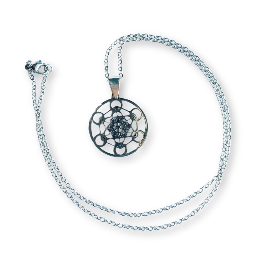 Dije de 2,5cm en acero quirúrgico. Incluye cadena también en acero quirúrgico.