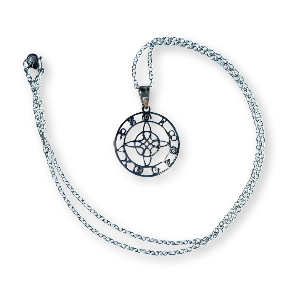 Dije de 2 cm en acero quirúrgico. Incluye cadena también en acero quirúrgico.
