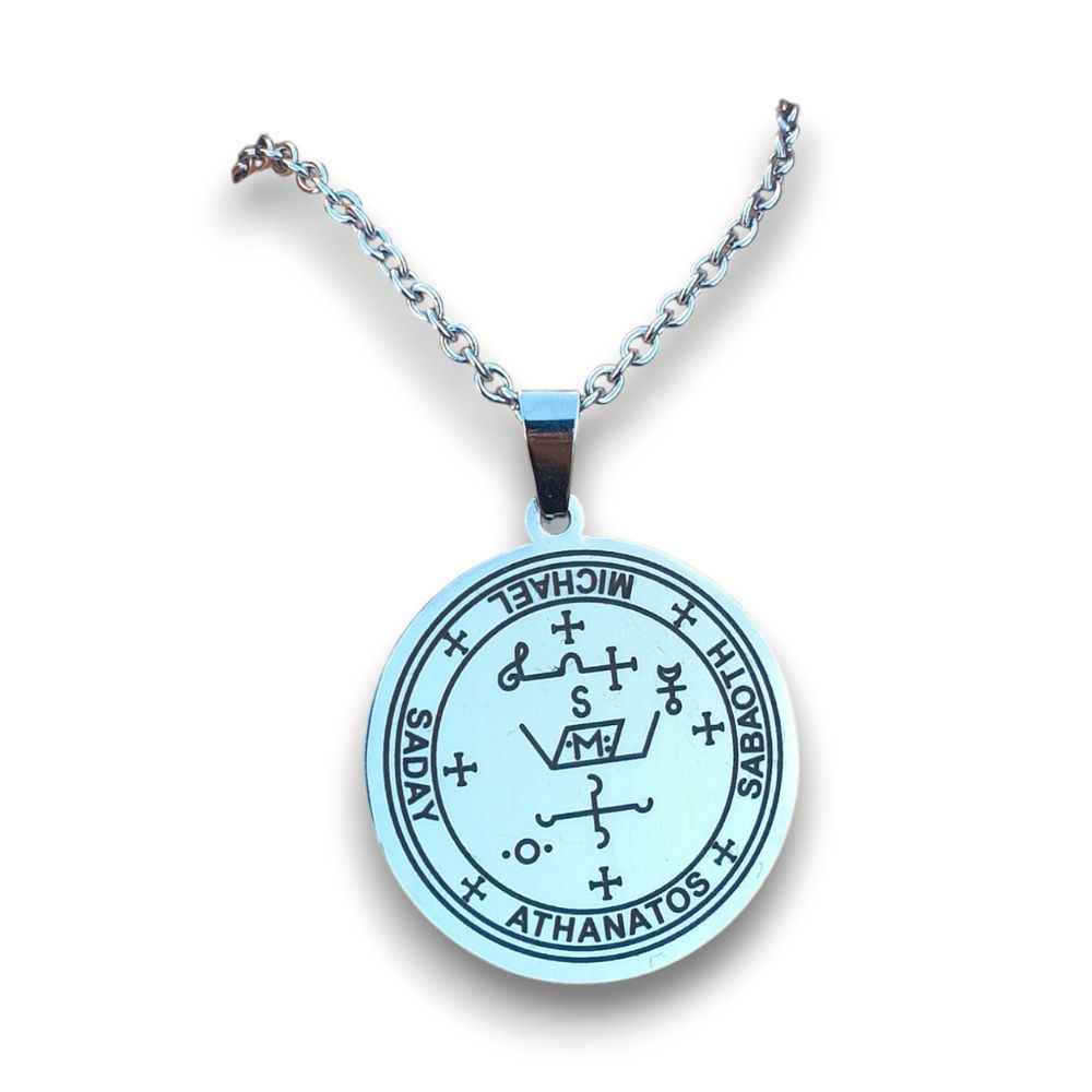 El sello del Arcángel San Miguel es un poderoso talismán de protección espiritual. Representa la fuerza del arcángel guerrero, guardián de la luz y vencedor de las sombras. Se utiliza para cortar energías negativas, alejar influencias dañinas y fortalecer la voluntad personal.