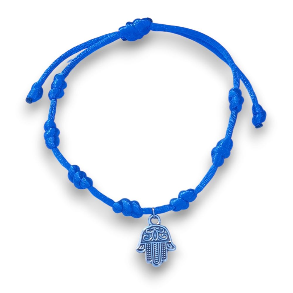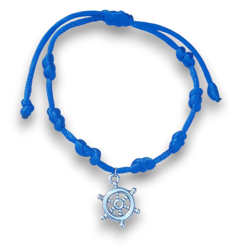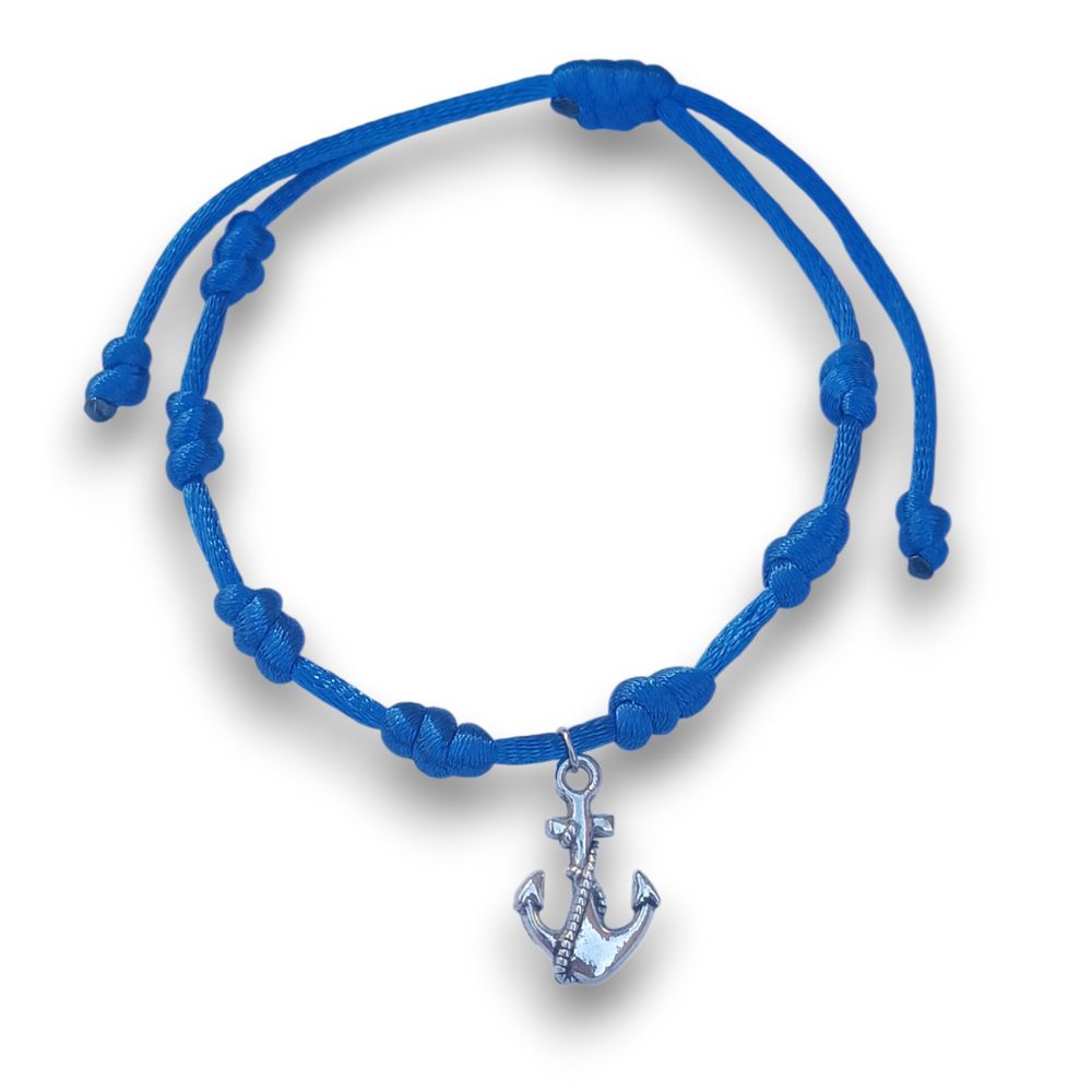 Pulsera regulable con hilo de seda Azúl Eléctrico 2mm con dije en acero de fundición
