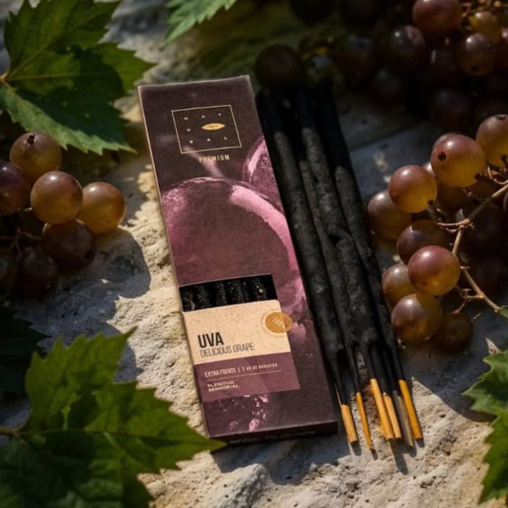 🍇~ Uva: el aroma a uva envuelve con su dulzura y profundidad. Sus notas frutales evocan sensaciones de placer y tranquilidad, creando un ambiente acogedor. Es un perfume reconfortante que invita al disfrute y a la relajación.