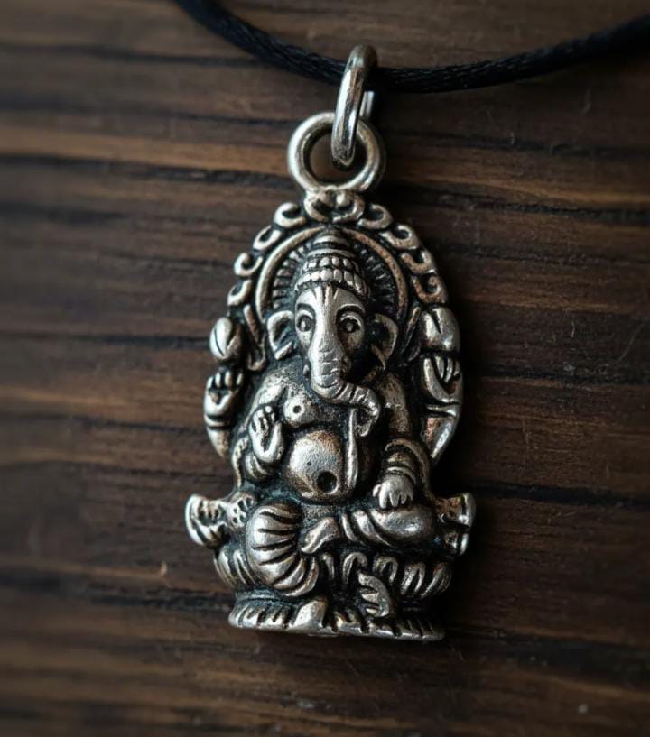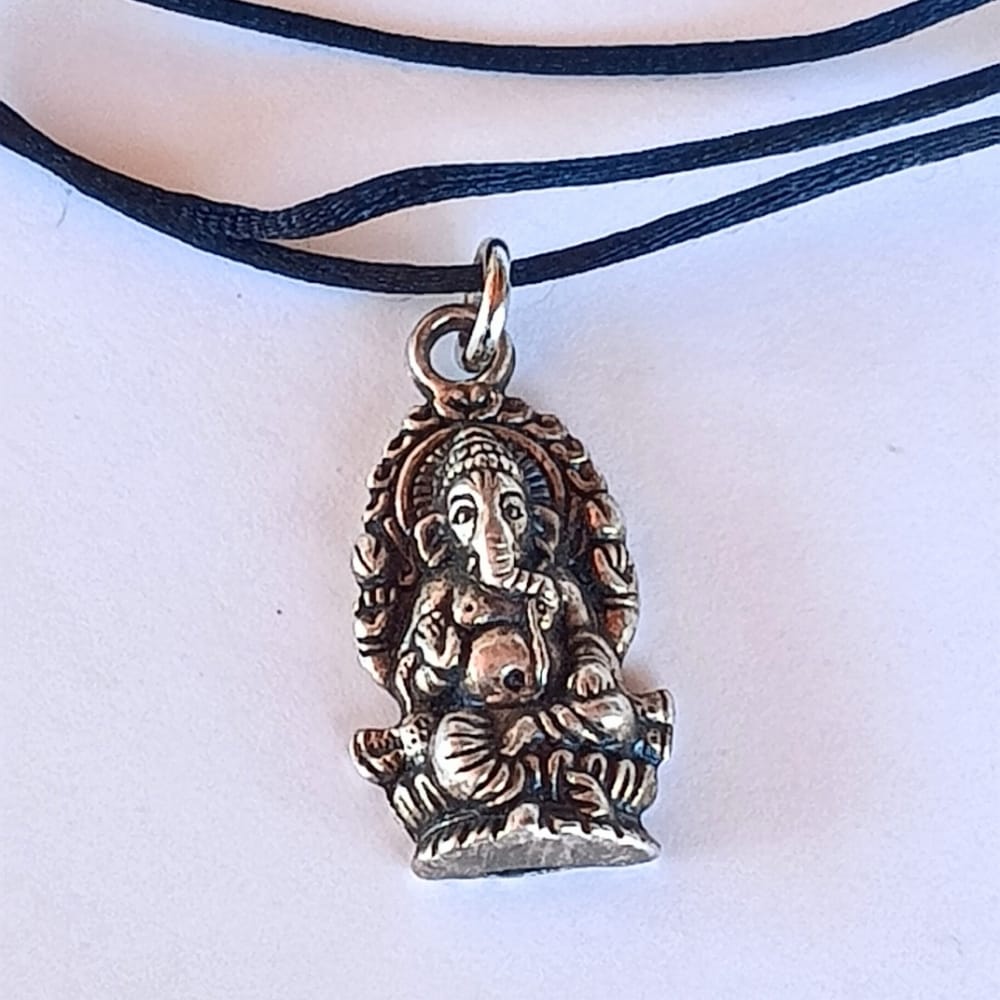 Dije de acero de fundición de 2,5 cm la estrella y el Ganesha, y 3cm el caracol marino y la cruz.